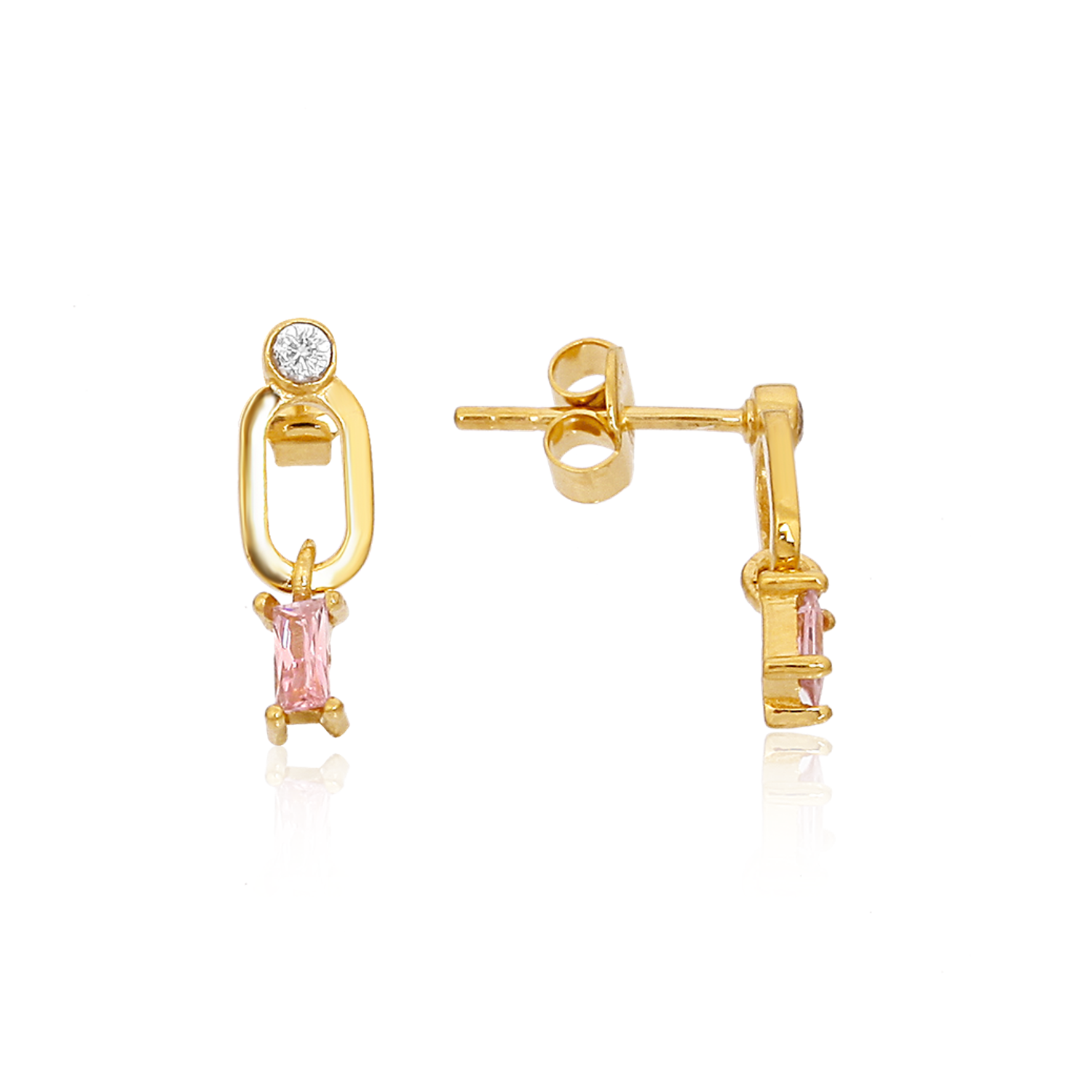 Laget i sølv, belagt med et tykt lag 24K gull, og pyntet med en nydelig rosa zirkonia. Lengde: ca. 1,5 cm.