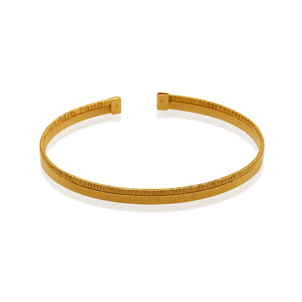 Minimalistisk, men med attitude. Celaeno er armbåndet som ikke skriker – det sier alt. Med tekstur i 24k gold vermeil og et åpent design som oser styrke, er dette smykket for deg som vet at kraft ligger i det uuttalte.