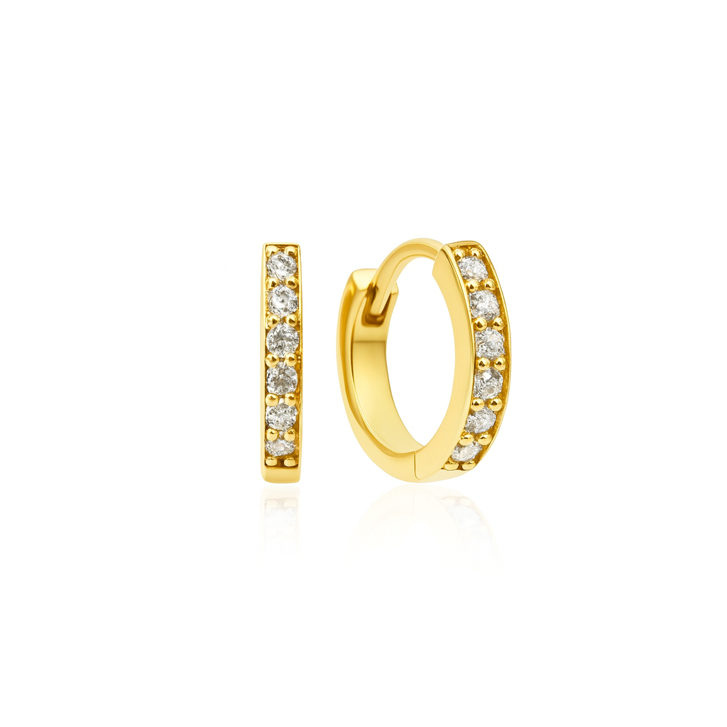 klassiske hoops i sølv, belagt med et tykt lag ekte 24K gull, pyntet med klare zirkonia. Laget for å vare.