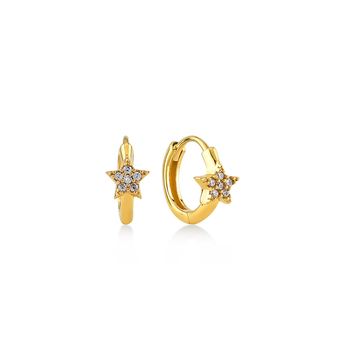Vermeil 24K. Øreringer pyntet med blank zirkonia. 1 cm i diameter.