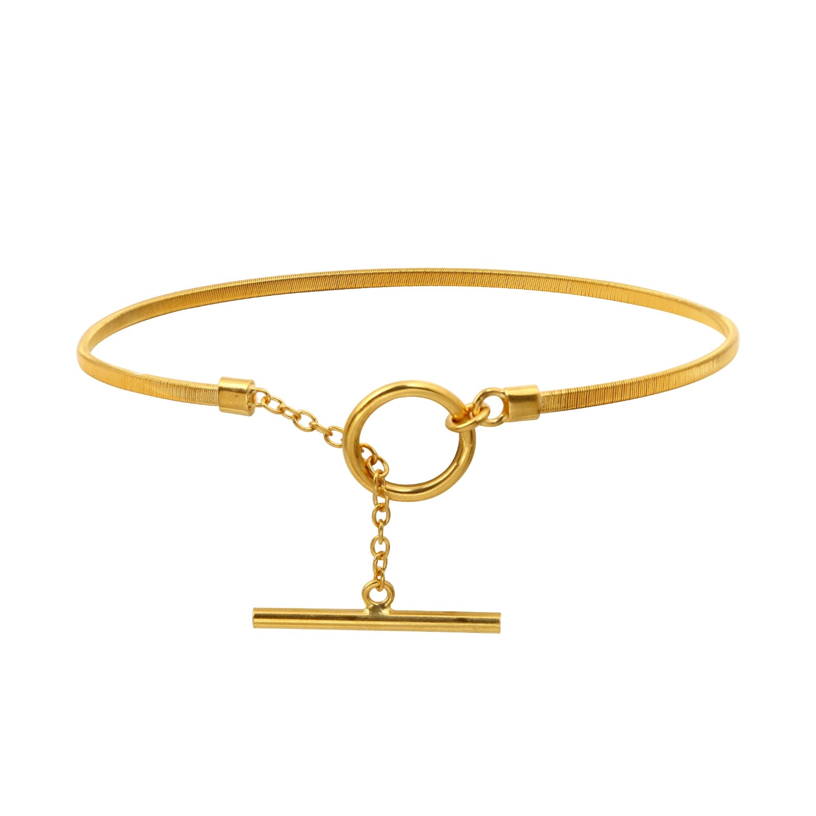 Et armbånd i 24 K gull vermeil med sirkel og stang lås, inspirert av stjernen Mizar. Symbolet på forbindelsen mellom lys og styrke- elegant alene. men vakkert i samspill med andre smykker