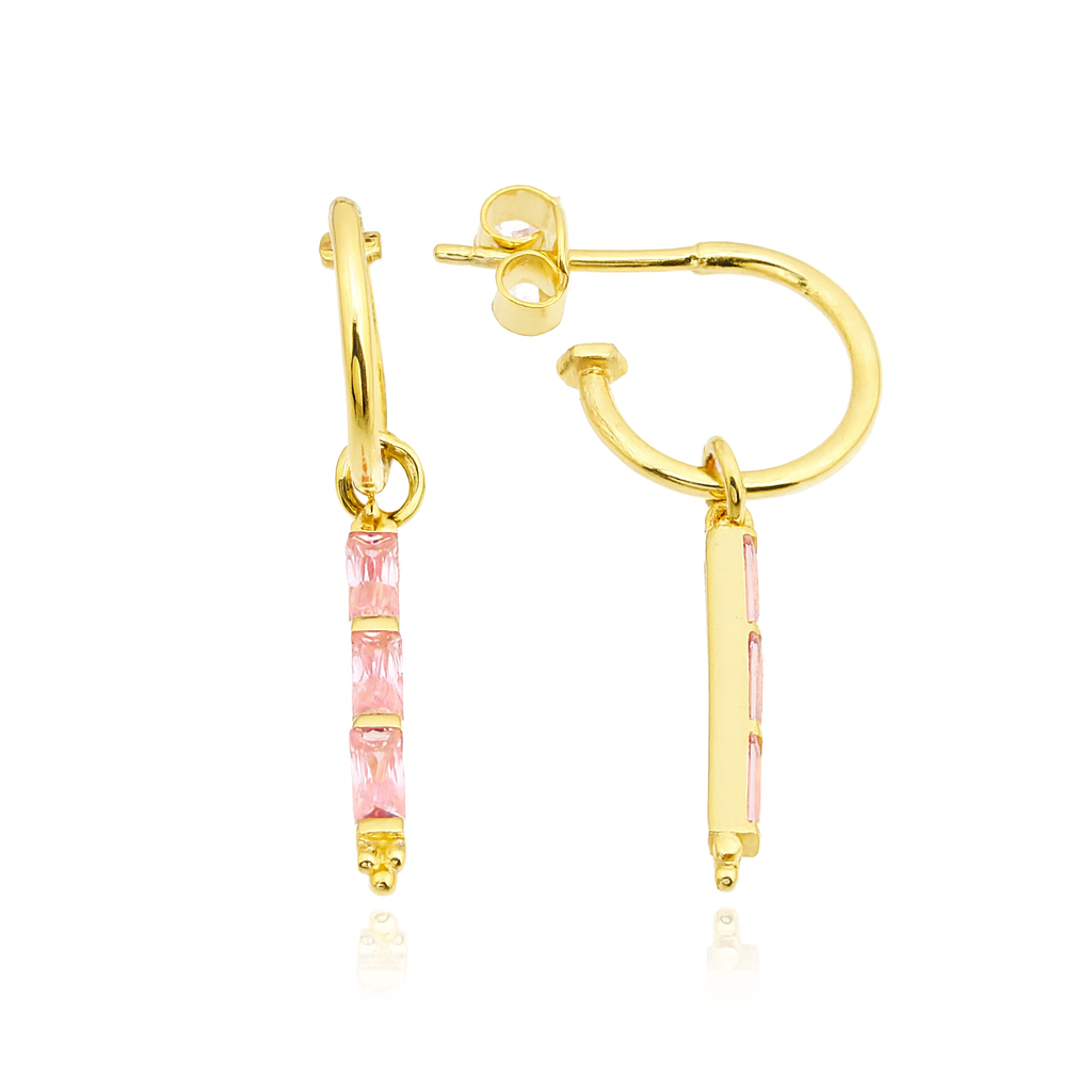 Naos er øreringer i sølv belagt med tykt lag 24k gull (gold vermeil) og lyserosa zirkonia med mild glans.