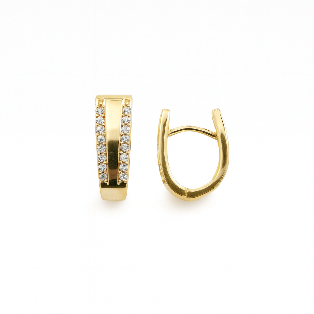 Norma er øreringer i sølv belagt med tykt lag 24k gull (gold vermeil) og små zirkonia som gir et rent og balansert uttrykk.