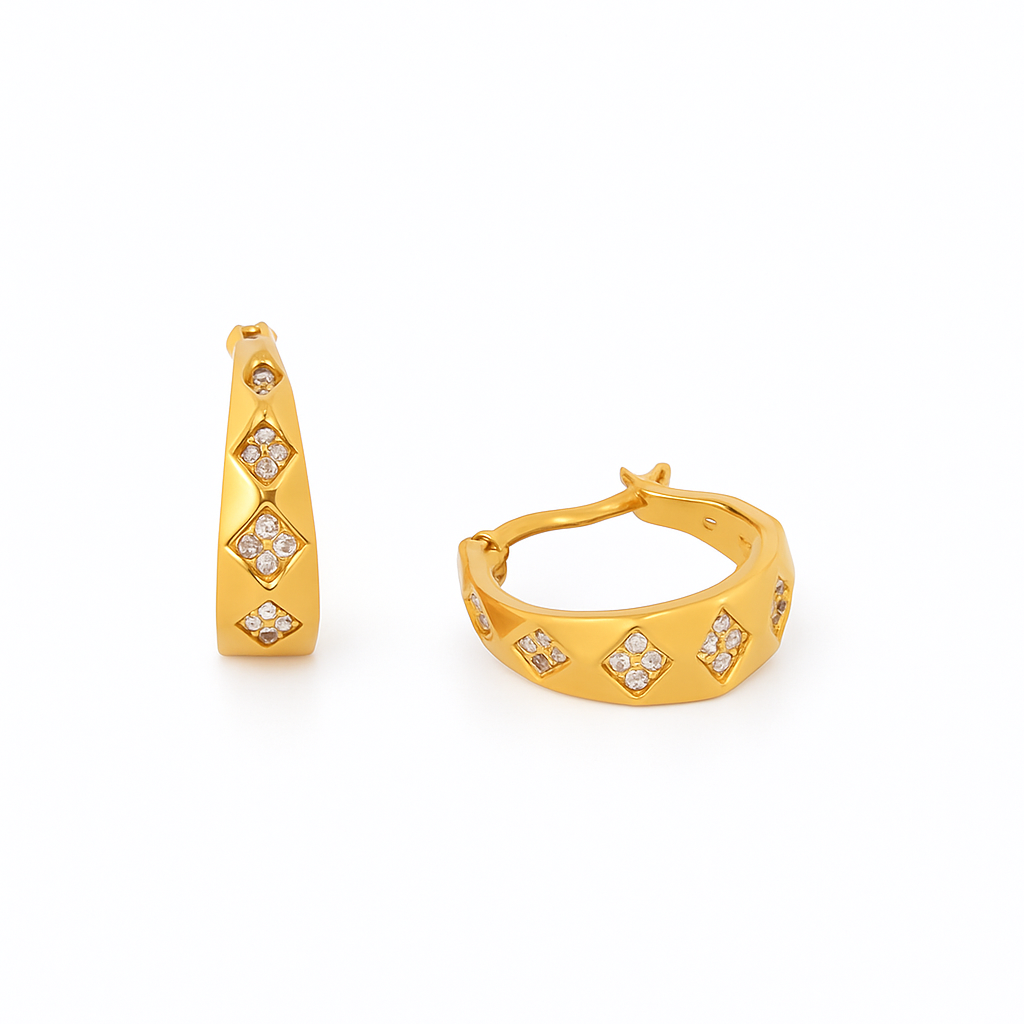 Pyxis er øreringer laget i sølv, belagt med et tykt lag ekte 24k gull og glitrende zirkonia som gløder diskret – som små påminnelser om alt du allerede bærer i deg.