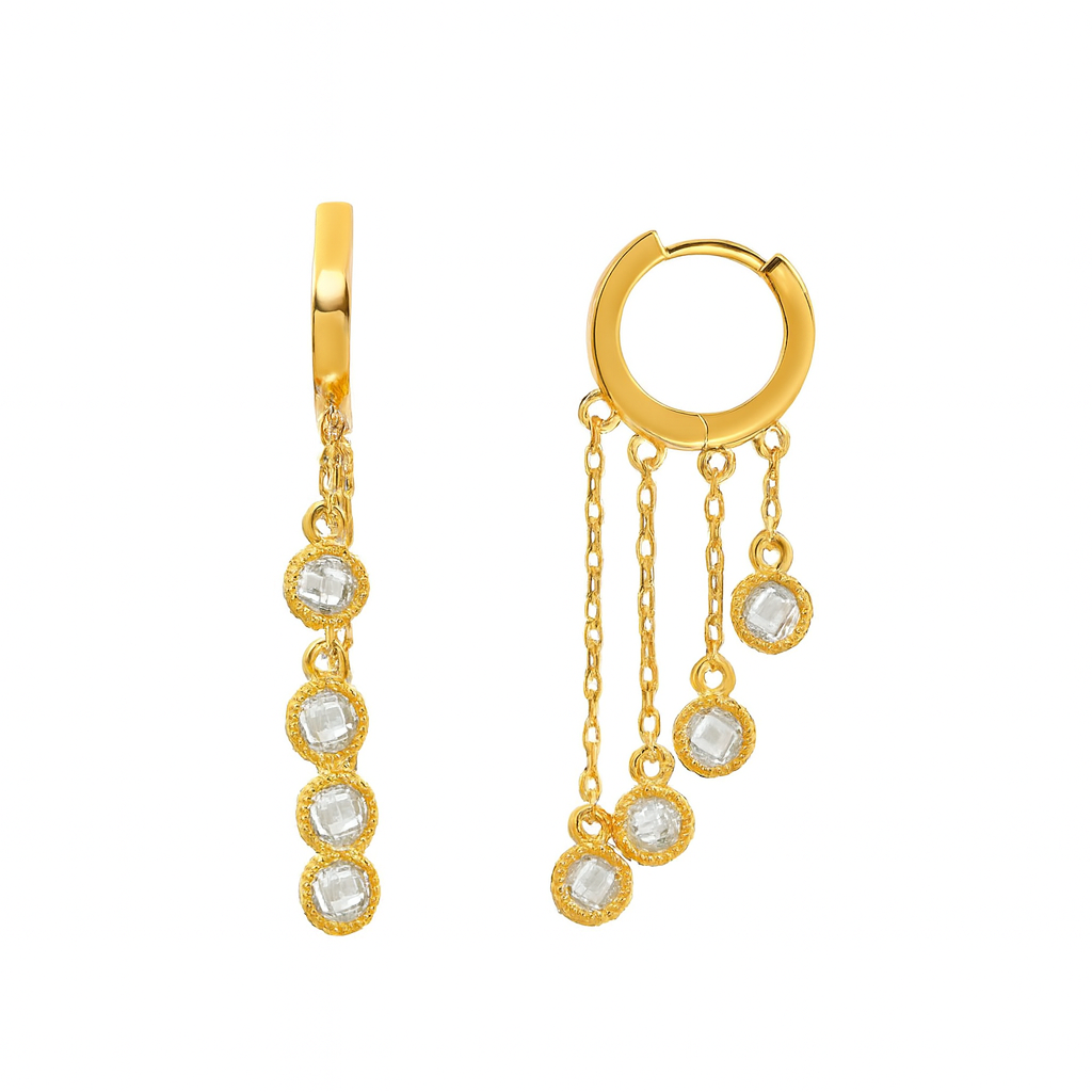Eksklusive øredobber i sølv belagt med et tykt lag ekte 24 K gull, pyntet med glitrende zirkonia.