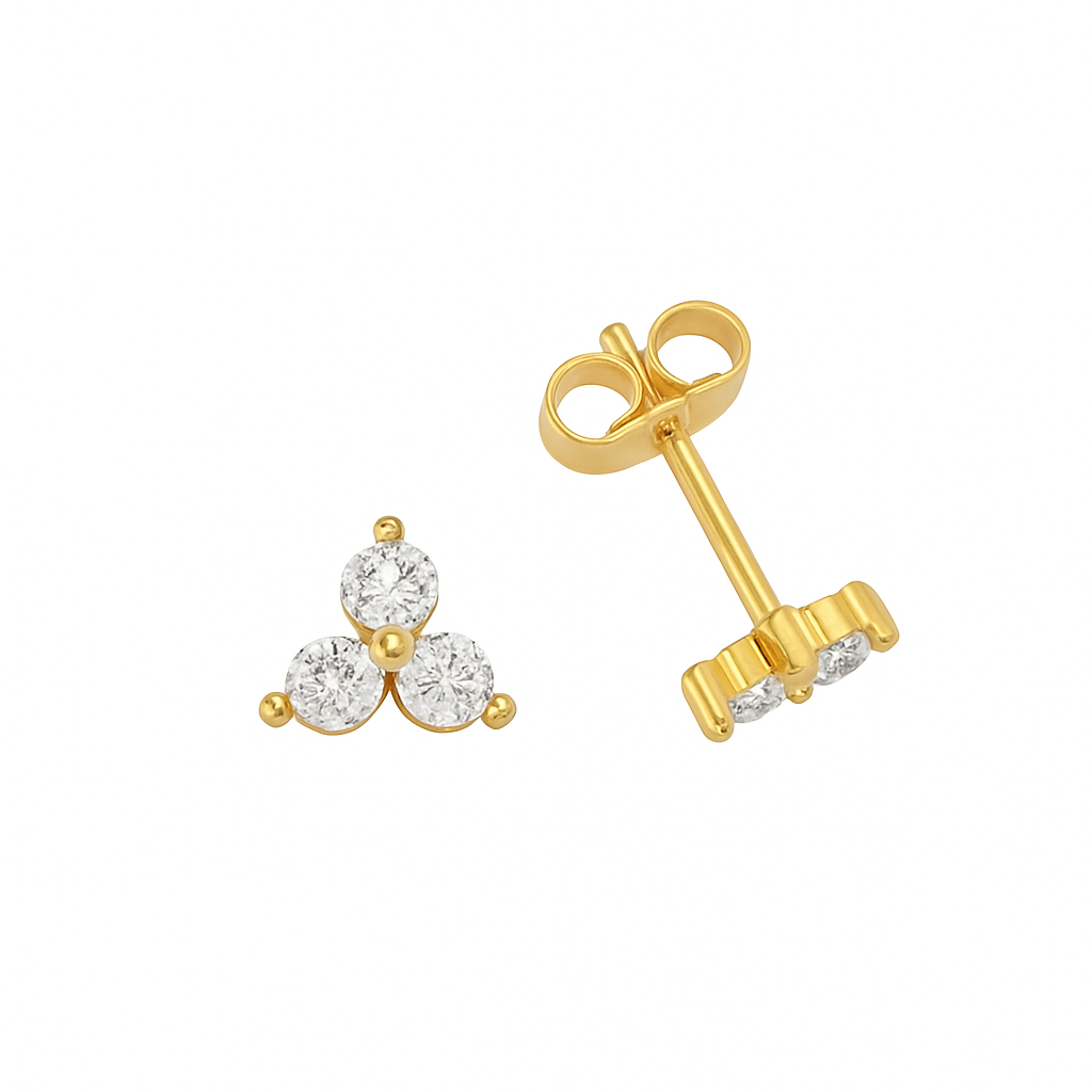 Spica er øreringer i sølv, belagt med tykt lag ekte 24k gull og klare zirkonia. 5mm store