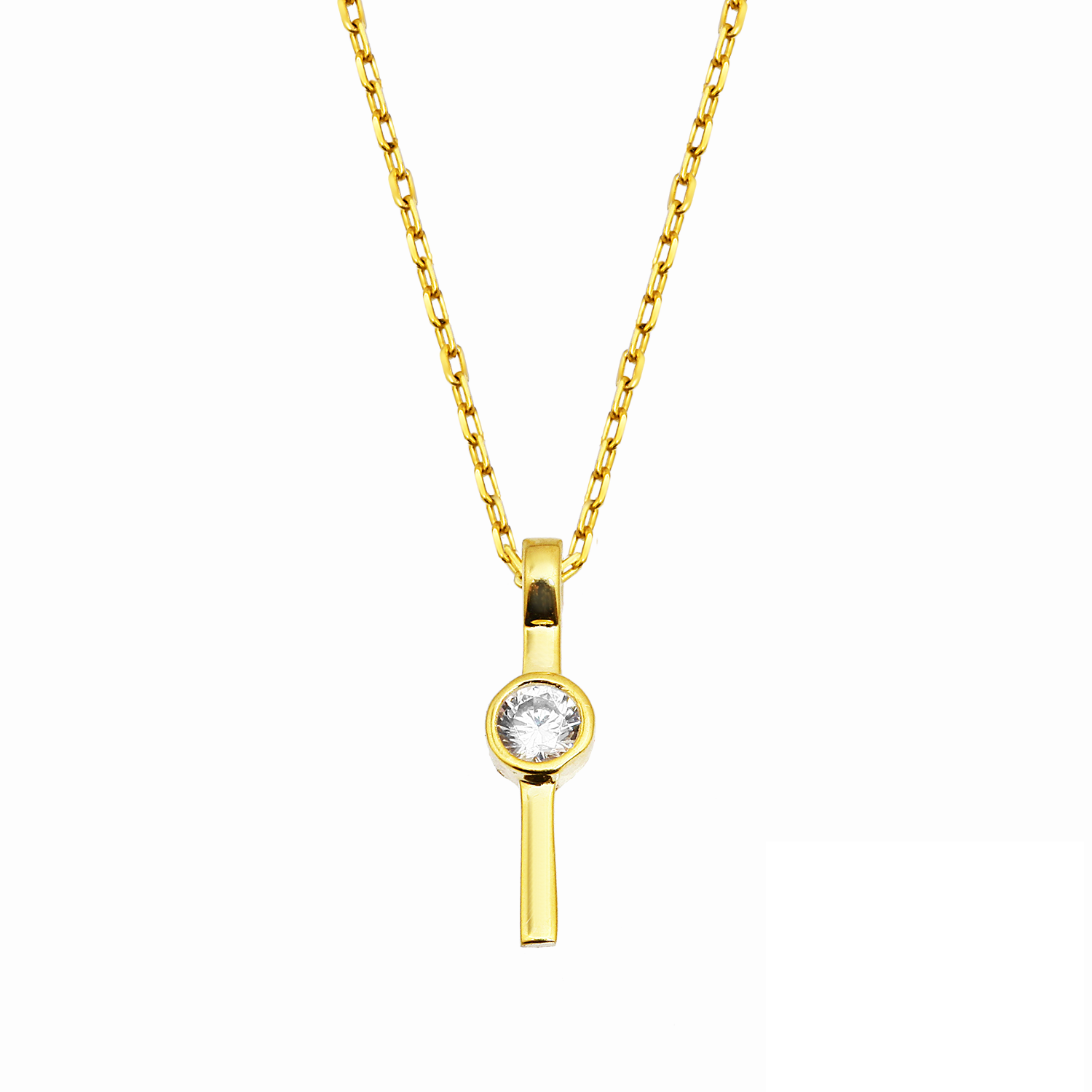 Et halskjede i 24K gull vermeil med klar zirkonia som fanger lyset. kjedet er 44 cm langt.